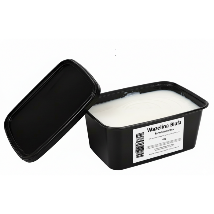Wazelina biała, tak chętnie używana w kosmetyce. Warto wiedzieć, że ten produkt nie wchłania się przez skórę ani błonę śluzową, dlatego nie wywołuje podrażnień i uczuleń. Pozostaje na skórze, tworząc warstwę ochronną, jednocześnie świetnie nawilżając cerę.